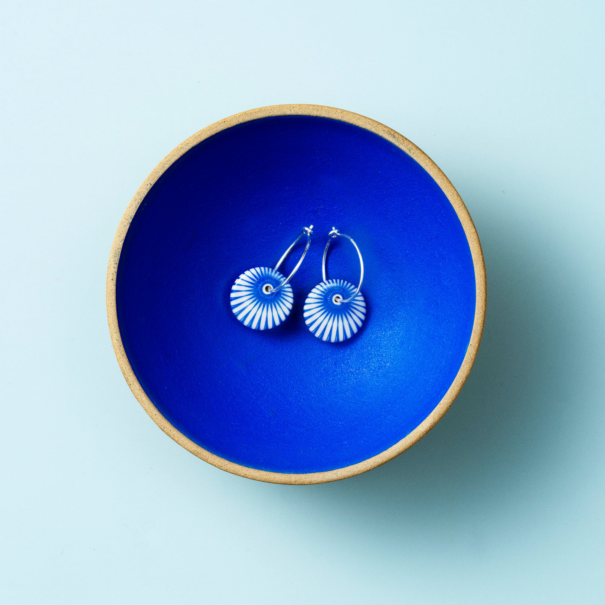 EMALJEN påføres omhyggeligt hvert enkelt smykke i hånden, på vores eget værksted i København. Arbejdet udføres i hånden og der forekommer således naturlige variationer fra smykke til smykke.